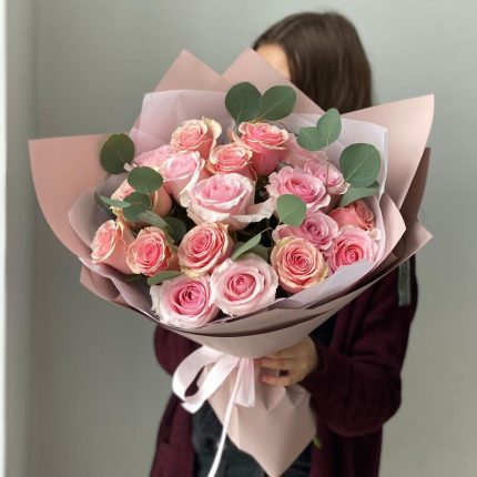 Розы 21 шт с эвкалиптом