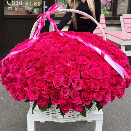 Весенняя композиция в корзине с тюльпанами и ромашками с элементами декора