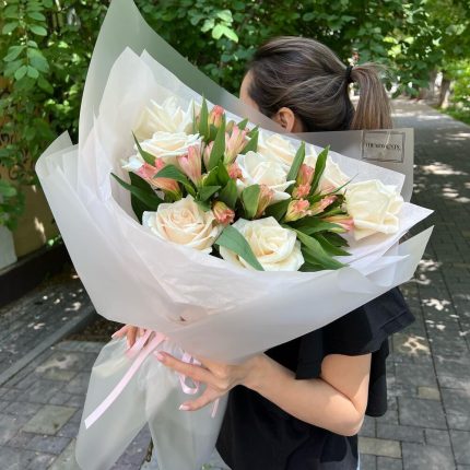 Шкатулка «Пинк» с клубникой в шоколаде и гипсофилой – 16 ягод и 7 гипсофил